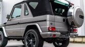 In the model 320 CDI a V6 turbo engine works, which generates 224 HP from 3.0 liters of displacement – the power transmission takes place over an automatic transmission. Under the interior of the G 320 CDI, which is held in black on the whole, wood applications at doors, center console and dashboard provide for accents. In addition to the full leather seats, the following features are also worth mentioning regarding the equipment of this Mercedes-Benz G model: Sunroof,power seats with memory, heated seats, power windows, air conditioning, cruise control and the original display radio. In addition, the original tarpaulin and a hardtop are also available for the car. Pneus of the mark Dunlop – which show approximately 70-90% of their new condition – show up on 5-spoke AMG rims. We certifiy a condition of 70-90% to the brake system, in the range of the chassis no modifications deviating from the original condition.